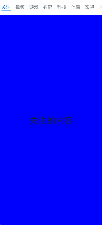 // TabContent的内容:关注、视频、游戏、数码、科技、体育、影视