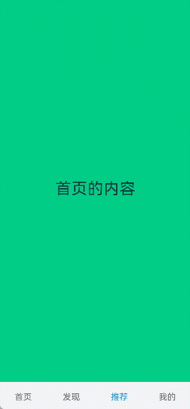 // TabContent的内容:首页、发现、推荐、我的