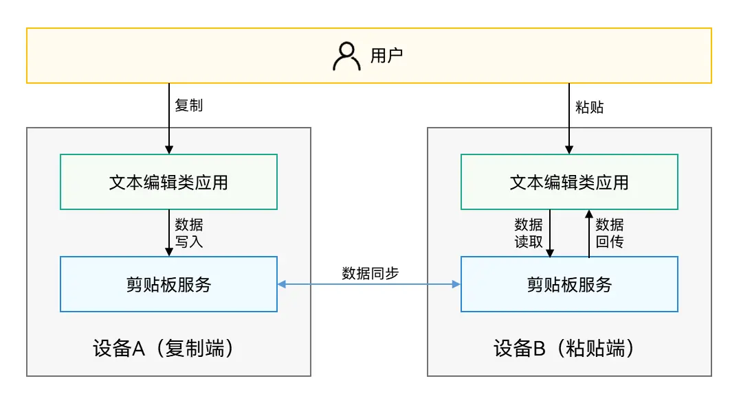 2. 系统剪贴板服务将处理相关数据,并完成数据同步。此过程开发者不感知。