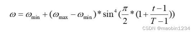 2、自适应调整惯性权重的方法。常用的线性递减的惯性权重对POS跳出局部最优有一定作用,但是无论粒子的适应度是否变得更好,惯性权重都会根据迭代次数以线性速度递减。所以依靠线性递减惯性因子的粒子群算法有时也会陷入局部最优。自适应调整惯性权重综合考虑了粒子的迭代次数和粒子的目标值,初期使用较大的ω增强粒子的全局搜索能力,当有粒子飞行至最优点附近时,则减小ω增加粒子的局部搜索能力,这样对PSO优化的结果有较大提升。自适应调整惯性权重的表达式为: