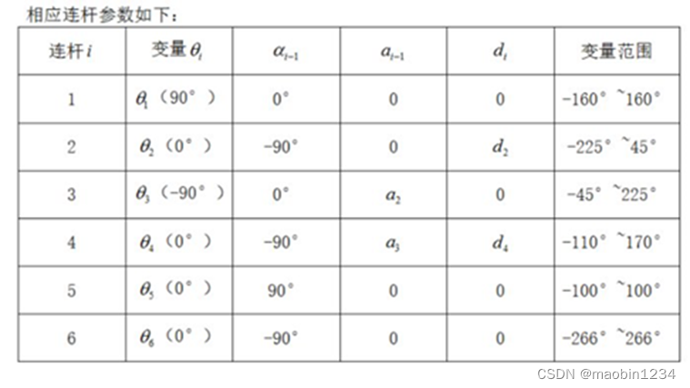 puma560机器人DH参数表如下: