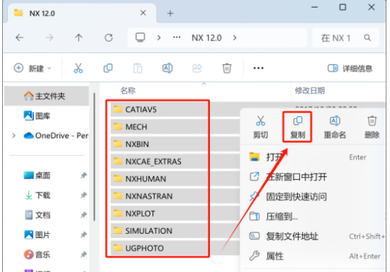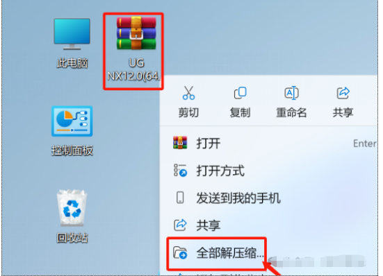 1.鼠标右击【UGNX12.0(64bit)】选择【全部解压缩】。