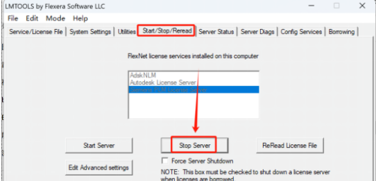 41.点击【Start/Stop/Reread】,点击【Stop Server】。