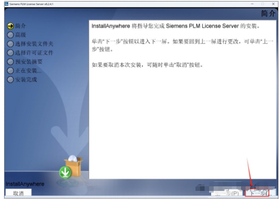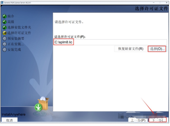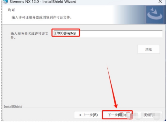 27.将【输入服务器名或许可证文件】中的【27800】,点击【下一步】。