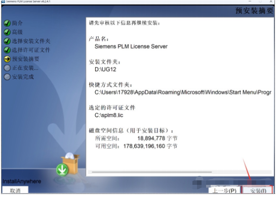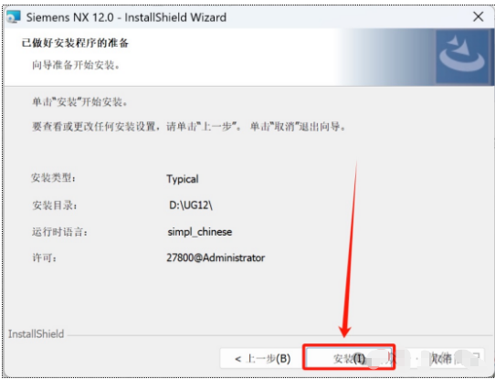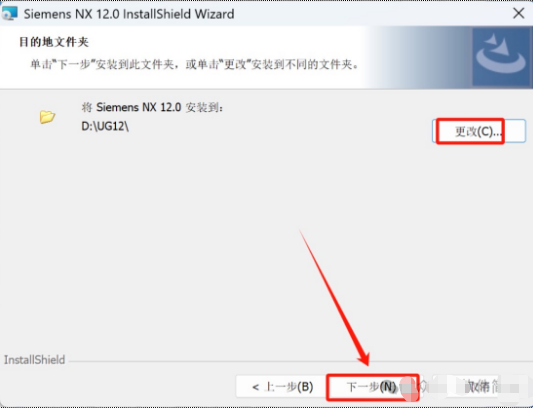 26.点击【下一步】(点击“更改”可更改软件安装路径,可选择“步骤15”中新建的UG12.0文件夹)。