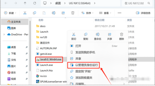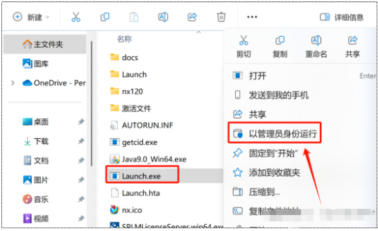 21.打开安装包解压后的【UG NX12.0(64bit)】,鼠标右击【Launch】选择【以管理员身份运行】。