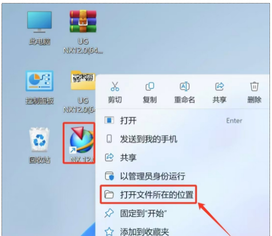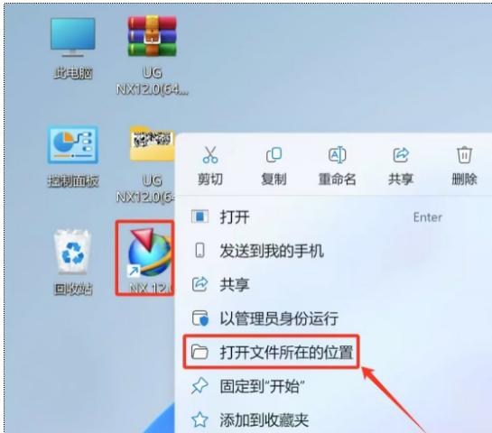 36.鼠标右击桌面【NX 12.0】图标选择【打开文件所在位置】。