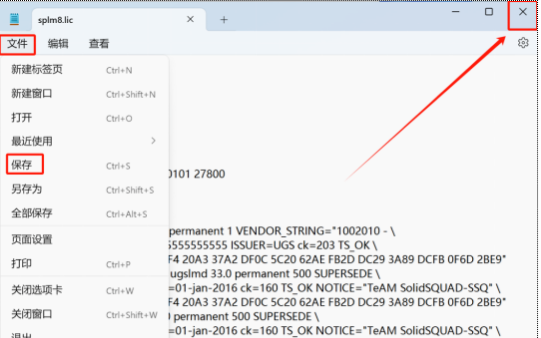 11.1点击左上角上角【文件】选择【保存】,点右上角X退出。