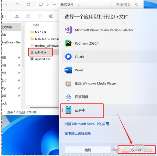9.双击打开【splm8.lic】,选择【记事本】,点击【确定】。