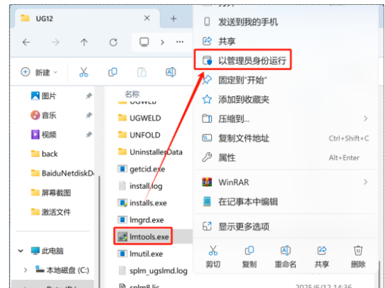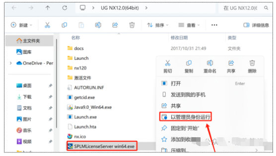 12.打开安装包解压后的【UG NX12.0(64bit)】文件夹,鼠标右击【SPLMLicenseServer win64】选择【以管理员身份运行】。