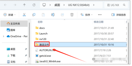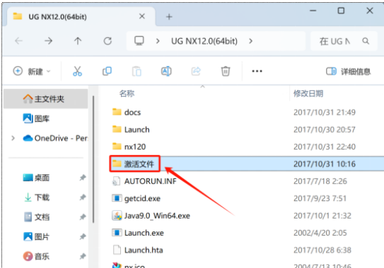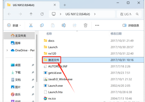 34.打开安装包解压后的【UG NX12.0(64bit)】中的【激活文件】文件夹。