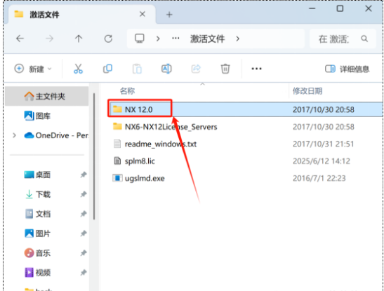 43.打开安装包解压后的【UG NX12.0(64bit)】中的【激活文件】文件夹。