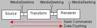 Filter 通过IMediaSeeking 接口支持seeking。应用程序从filter graph manager请求IMediaSeeking并且通过这个接口执行seek 命令。Filter graph manager分发每个seek命令到grpah中所有的renderer。每个renderer 传递seek 命令到upstream,通过upstream filter 的output pin 直到某一个可以执行filter这个seek 命令。典型的source filter或者parser filter,例如AVI Splitter,执行seek 操作。