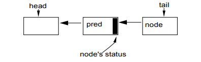 在原始版本的CLH锁中,节点间甚至都没有互相链接。自旋锁中,pred变量可以是一个局部变量。然而,Scott和Scherer证明了通过在节点中显式地维护前驱节点,CLH锁就可以处理“超时”和各种形式的“取消”:如果一个节点的前驱节点取消了,这个节点就可以滑动去使用前面一个节点的状态字段。