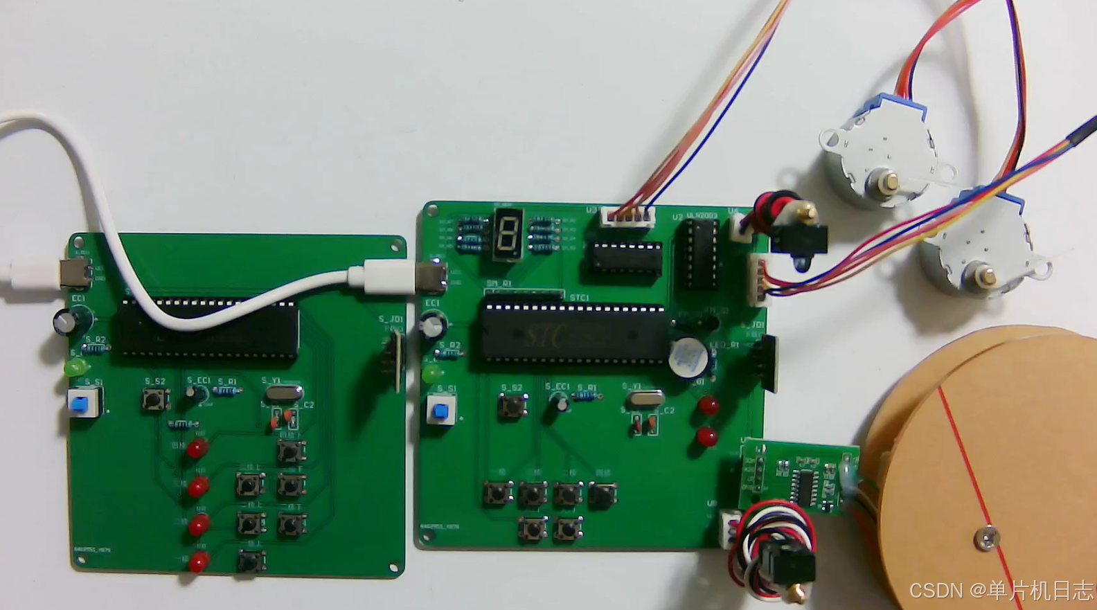 3、通过另一个四相步进电机模拟电梯升降,每转一圈,代表一层