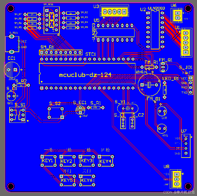 由原理图导出,封装很大一部分都是作者自己绘制,不提供封装库,只提供连接好的源文件。中间有一个项目编号,隐藏在单片机底座下,插入单片机后不会看到。