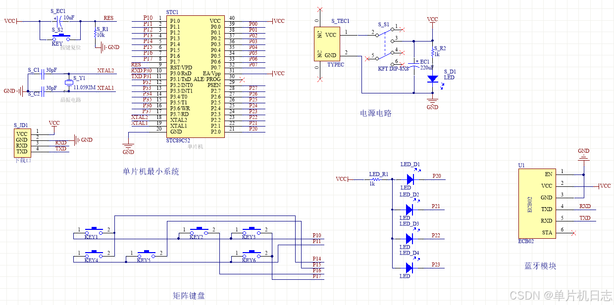 注意:原理图只是画出了模块的引脚图,而并不是模块的内部结构原理图