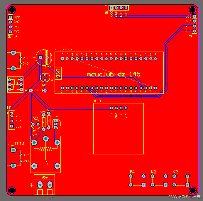 由原理图导出,封装很大一部分都是作者自己绘制,不提供封装库,只提供连接好的源文件。中间有一个项目编号,隐藏在单片机底座下,插入单片机后不会看到。