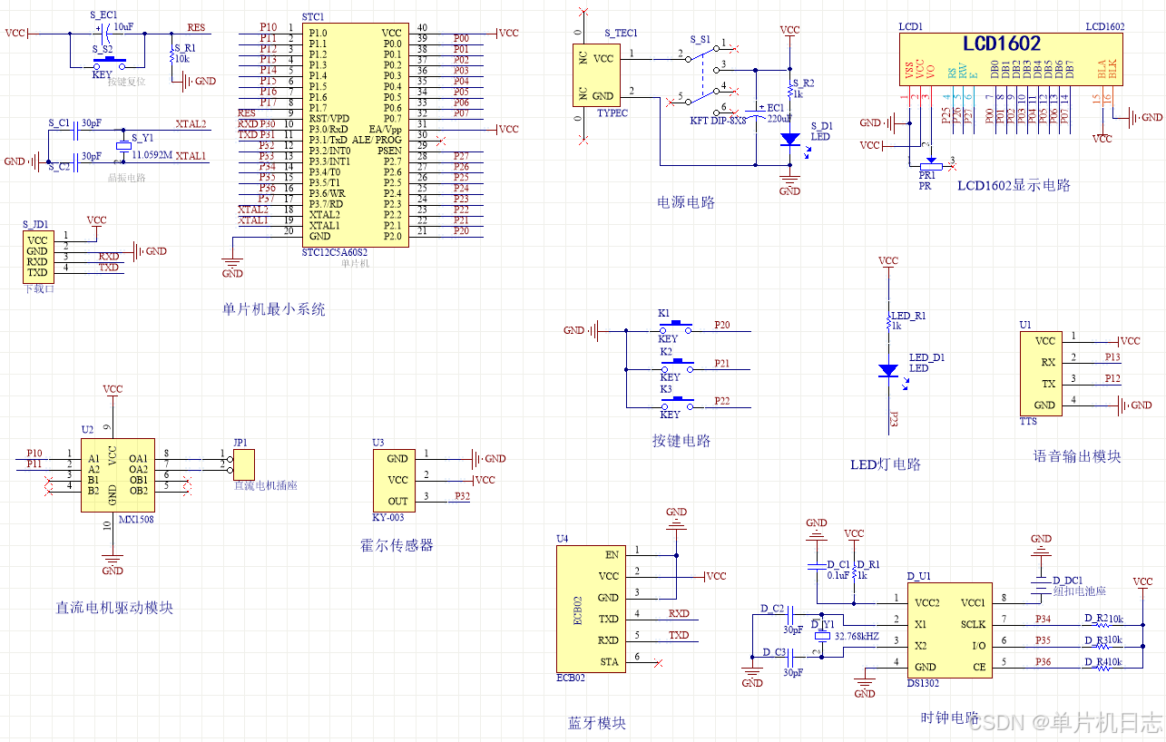 注意:原理图只是画出了模块的引脚图,而并不是模块的内部结构原理图