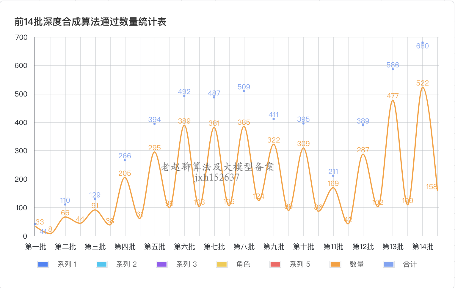 从首批(2023 年 6 月)到第 14 批(2025 年 11 月),全国深度合成算法备案总量达 5100 项,整体呈现 “初期起步 - 中期爆发 - 后期稳定” 的三阶段特征,具体批次数量变化如下: