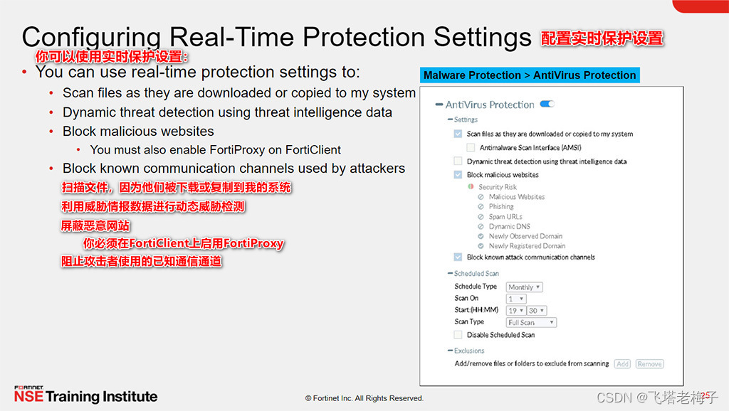 上图展示了FortiClient上的实时保护配置。要启用实时保护,你必须选择“在文件下载或复制到我的系统时扫描文件”。为什么?