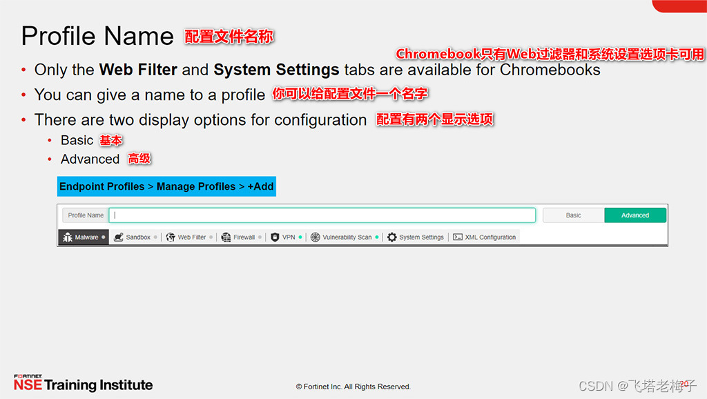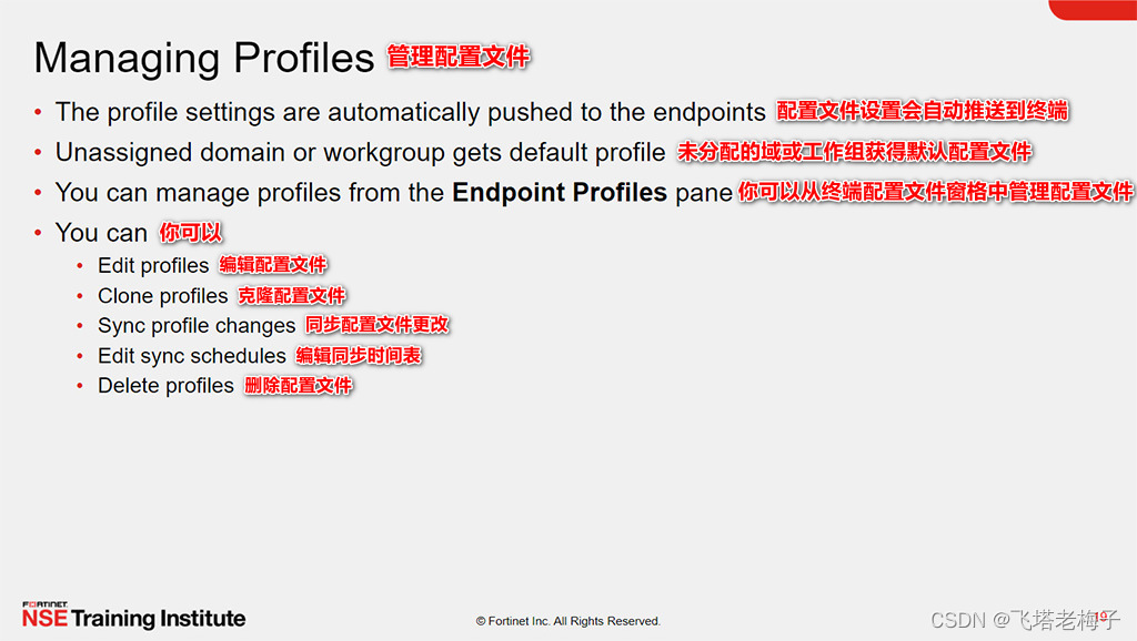通过展示在配置、编辑、分配和管理终端配置文件方面的能力,你将能够使用终端配置文件来定义安装在FortiClient终端上的功能。