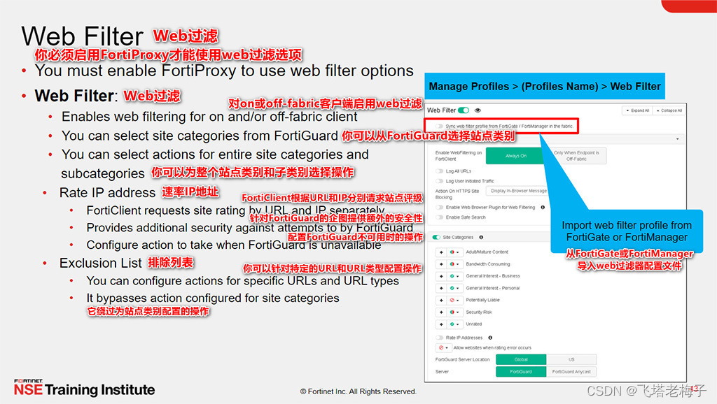 你必须启用FortiProxy来使用web过滤选项以及一些防病毒选项。你可以启用“HTTPS代理”。如果禁用,FortiProxy将不再检测HTTPS流量。它还支持其他有用的选项,如上图所示。