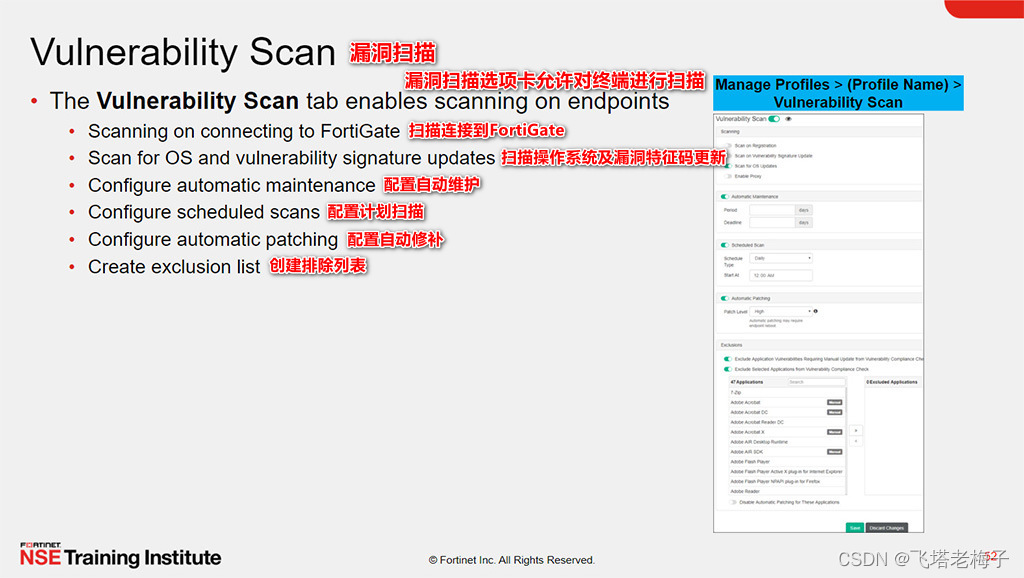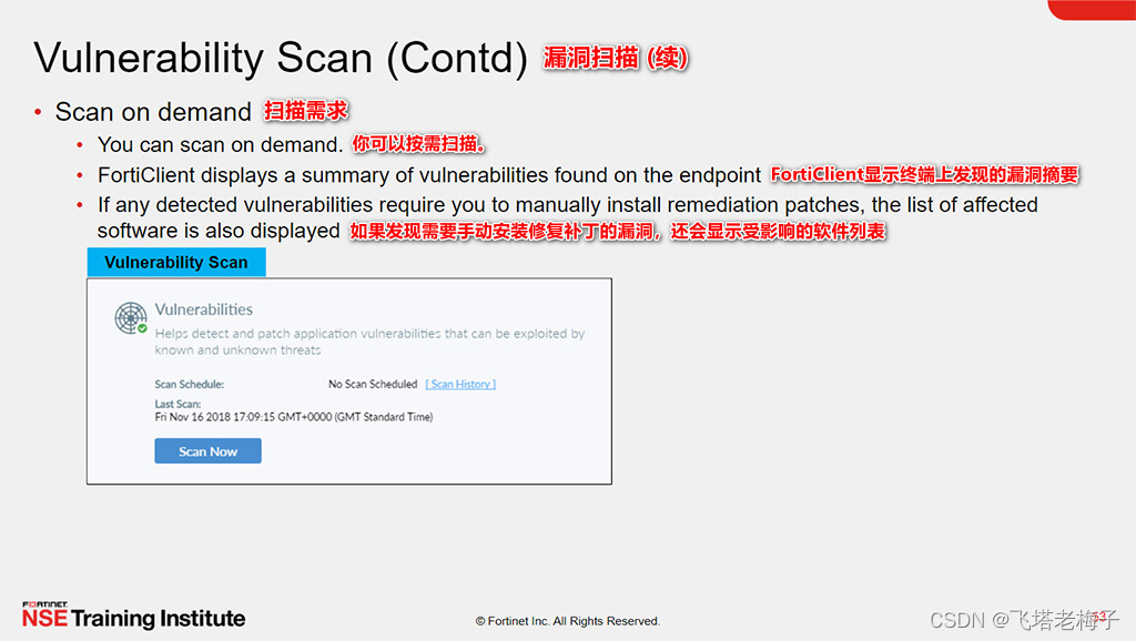 你可以选择在连接到FortiGate之后、更新漏洞签名时以及操作系统更新时对端点进行漏洞扫描。