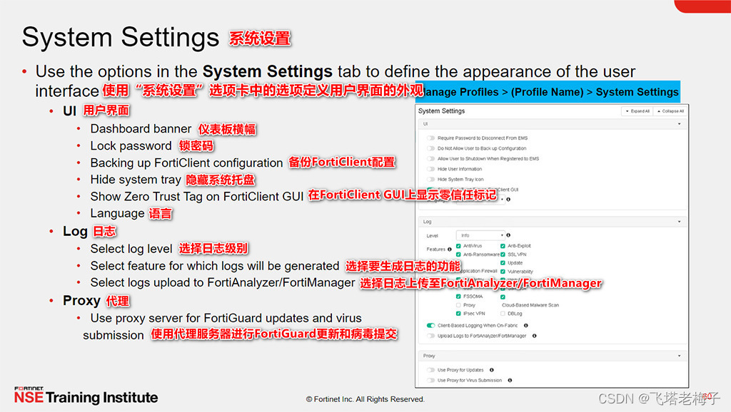 在FortiClient系统设置GUI上还有其他的设置,包括: