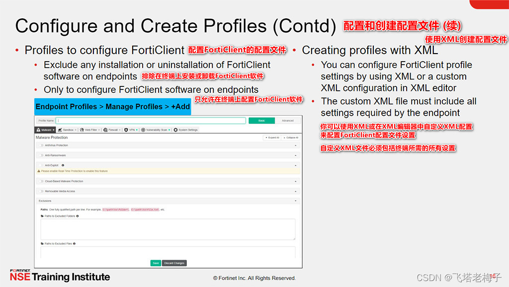 通过展示配置FortiClient XML的能力,你将能够在XML编辑器中配置FortiClient配置。
