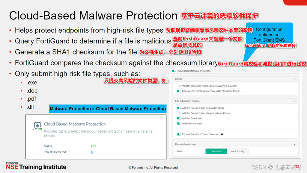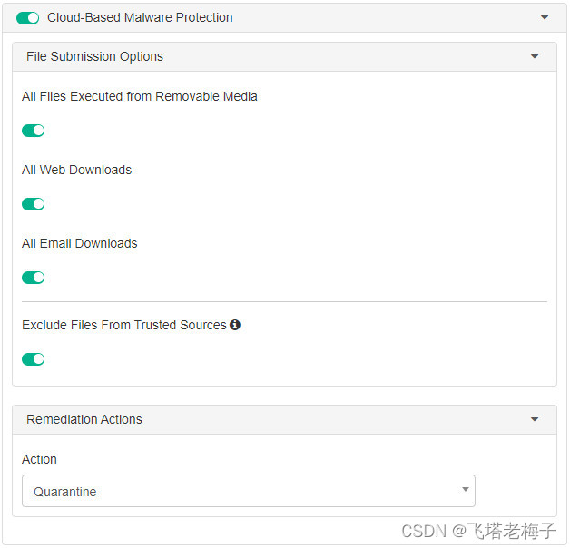 你可以启用基于云的恶意软件爆发检测。基于云的恶意软件保护功能通过查询FortiGuard来确定文件是否恶意,帮助保护终端免受来自外部来源的高风险文件类型,如互联网或网络驱动器。