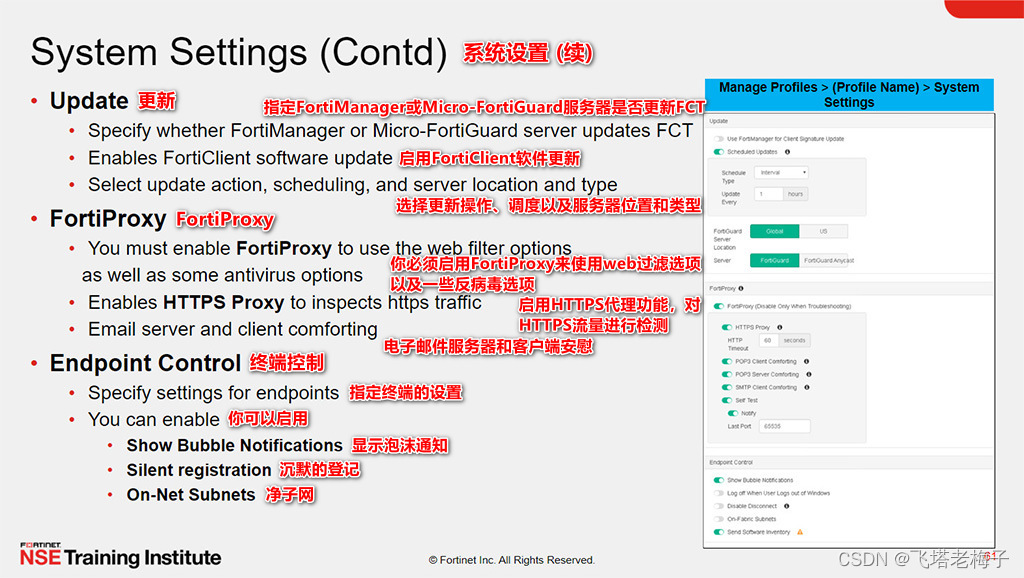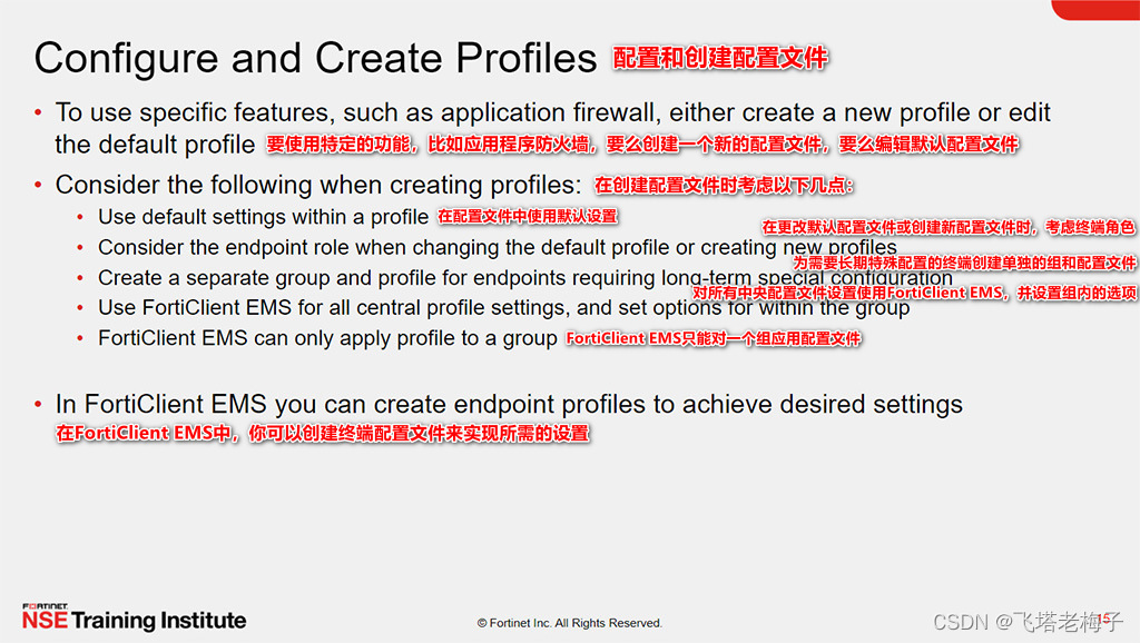 通过展示FortiClient配置的能力,你将能够创建终端策略和配置文件,以及启用不同的FortiClient功能和设置。