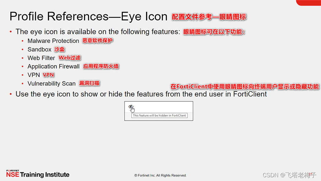 眼睛图标在以下FortiClient功能上可用: