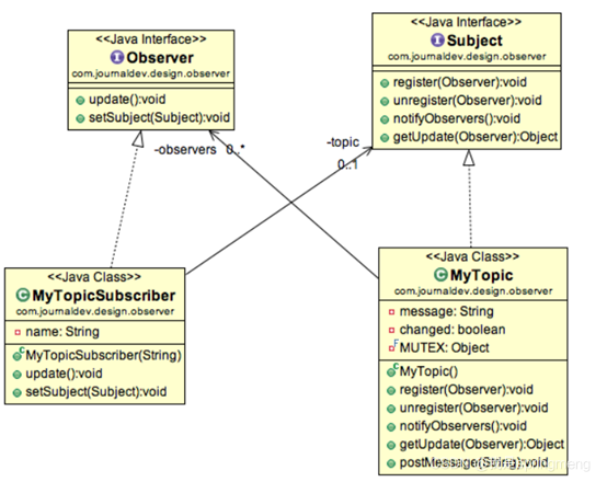 观察者模式属于⾏为型模式,也叫发布订阅模式,定义对象间的⼀种⼀对多的依赖关系,当⼀个对象的 状态发⽣改变时,所有依赖于它的对象都得到通知并被⾃动更新。主要解决⼀个对象状态改变给其他对象通知的问题,缺点是如果被观察者对象有很多的直接和间接观察者的话通知很耗时, 如果存在循环依赖的话可能导致系统崩溃,另外观察者⽆法知道⽬标对象具体是怎么发⽣变化的。