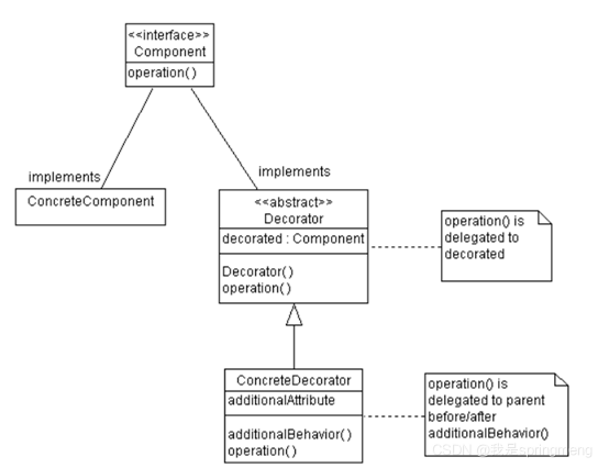 装饰器模式具有层级关系,装饰器与被装饰者实现同⼀个接⼝,满⾜ is-a 的关系,注重覆盖和扩展,是⼀种前置考虑。