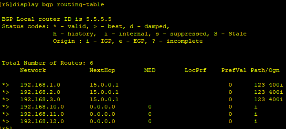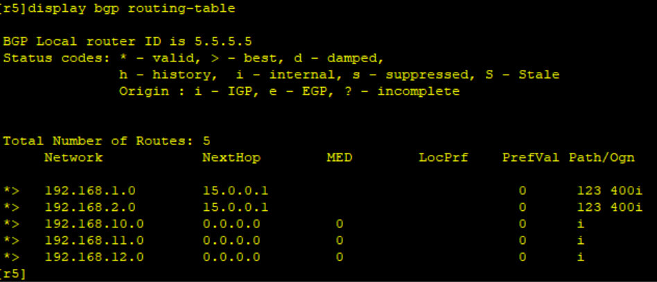 [R5-bgp]peer 15.0.0.1 as 123