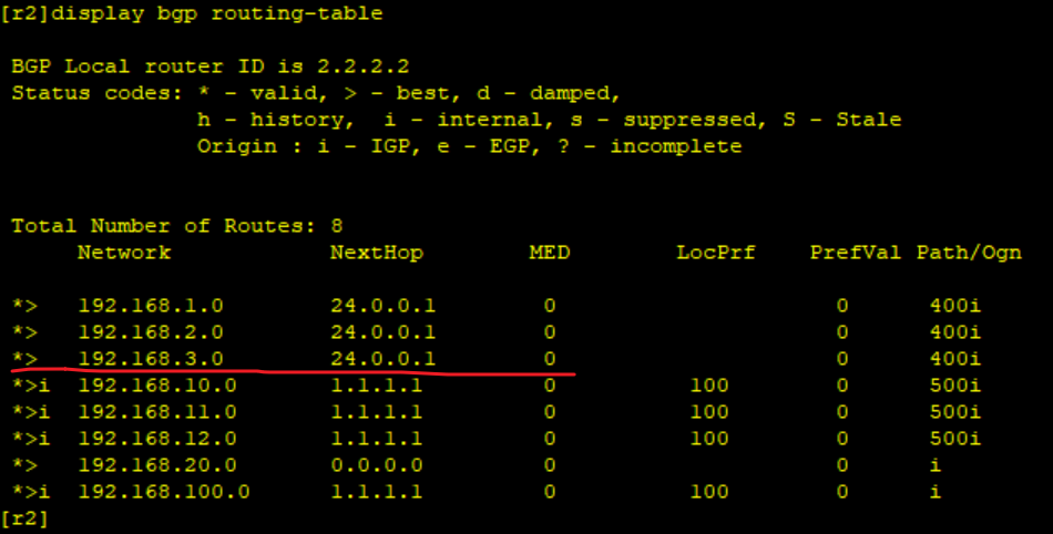 [R2-bgp]peer 24.0.0.1 as 400
