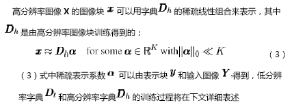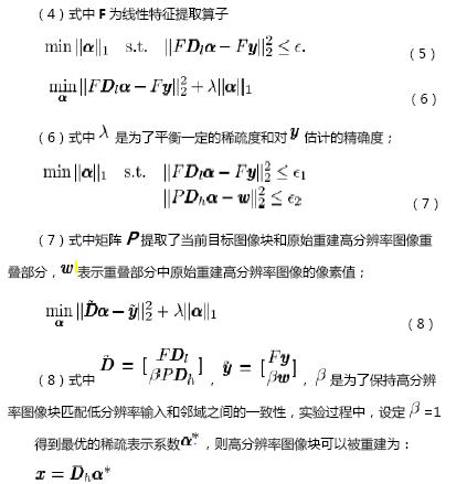 给定采样训练图像块对,其中是高分辨率图像块的样本集,是低分辨率图像块的样本集,我们的目的是为了实现对高分辨率和低分辨率图像块学习字典的稀疏表示,对高分辨率图像块的稀疏表示和低分辨率图像块的稀疏表示方法是一样的,同时由于图像SR重建本身是就是一个病态(ill-posed)问题,所以这在实际处理也是比较困难的,高分辨率和低分辨率图像块空间各自的稀疏编码问题分别是:
