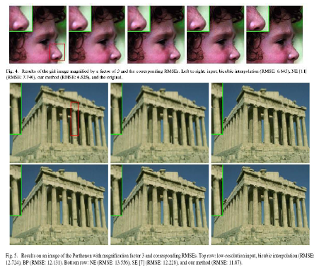 图像超分辨率重建技术的第三类方法是基于机器学习的方法,这种方法主要利用低分辨率和高分辨率图像块的先验知识来进行SR重建。【9】提出了针对普通格式图像的基于实例学习的方法,该方法主要是通过置信传播的马尔科夫随机场(MRF)来预测低分辨率到高分辨率图像的重建过程;【10】使用初始简图增强模糊边缘、脊、角点,然而,这和先前方法一样需要巨大的数据库要求和成千上万的高分辨率和低分辨率图像块对,自言而然它的计算复杂度也就很高了;【11】采纳了流行学习局部线性嵌入的方法,推定高分辨率和低分辨率图像块空间存在相似的流行向量,该算法是将低分辨率图像块的局部几何空间映射投影到高分辨率图像块几何空间,从而生成一个线性邻域组合,利用这种方法,更多的图像块模式可以用一些更小的训练集来表示,然而,由于过拟合或欠拟合,K邻域重建方法经常会造成模糊效应。上文中提出了一种基于稀疏编码的自适应选择最相关重建邻域,有效避免了过拟合和欠拟合,但缺点是对大量采样图像块数据库的稀疏编码是比较耗时的。