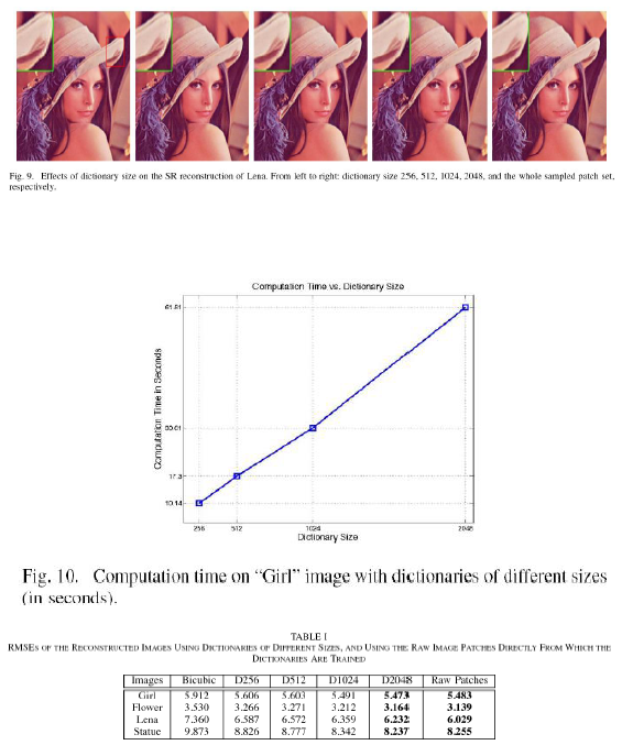本文提出了一种新颖的基于稀疏表示的单幅图像超分辨率重建算法,基本思想是通过对高分辨率超完备字典和低分辨率超完备字典进行联合训练以保证它们稀疏表示系数的一致性,这种方法使得局部和全局的相邻图像块之间的兼容性均得到了加强,实验结果表明这种基于图像块先验知识的稀疏表示对普通图像和人脸图像都有很好的效果。然而,对于图像超分辨重建,接下来的重点研究问题是对自然图像块确定最优的字典大小,并将其与压缩感知的理论更加紧密地联系起来,利用其找到合适的图像块大小和训练字典对的合适方法。