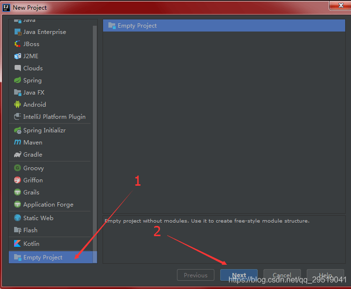 点击 Empty Project -> Next