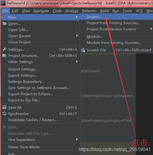 在Idea中创建工程:File -> New ->Project