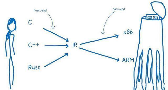 WebAssenbly的执行包括两部分:编译器前端和后端。前端部分实现将高级语言(C、C++和Rust)编译成LLVM IR码。后端负责将LLVM IR编译成各架构(x86,AMD64,ARM)对应的机器码。