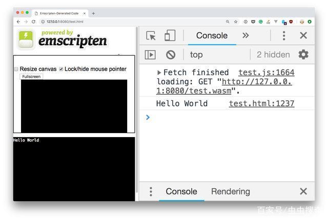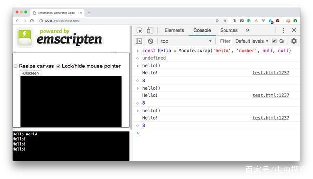 让我们使用Emscripten编译这个程序,在浏览器中运行它: