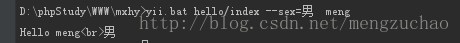 a. cmd下运行 yii.bat hello/index --sex=男 meng