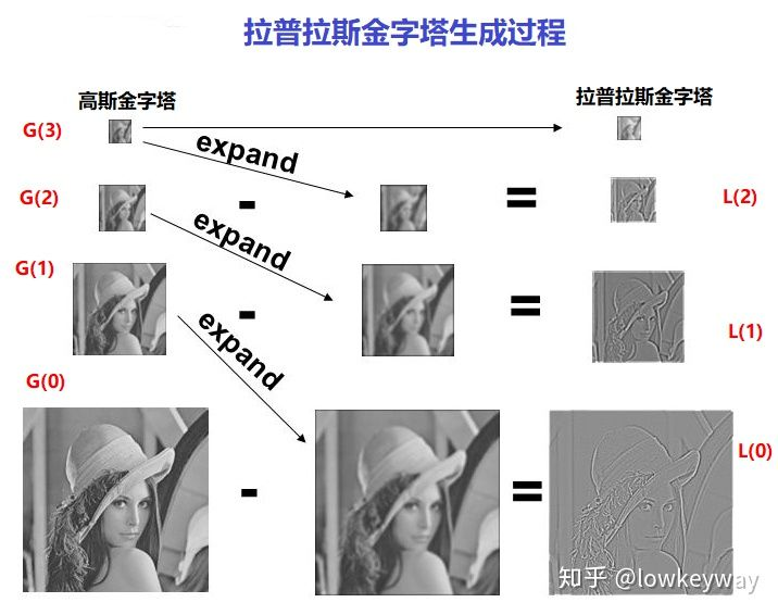 拉普拉斯金字塔可以认为是残差金字塔,用来存储下采样后图片与原始图片的差异。