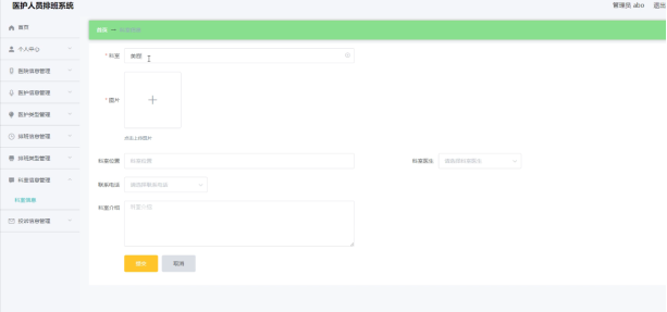 管理员可以对科室信息添加修改删除操作。界面如下图所示: