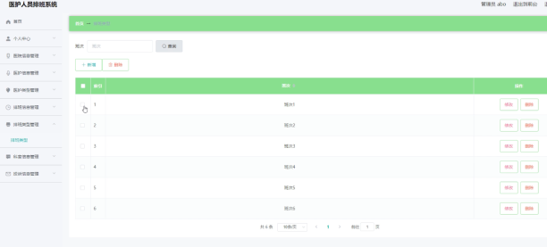 管理员可以对排班类型进行添加修改删除操作。具体界面如图5.2所示。
