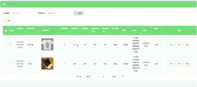 管理员可查看所有订单信息,对未发货订单可进行发货操作,订单管理界面如图5-13所示。