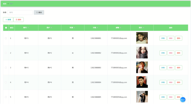 管理员可查看、添加、修改、删除用户信息,用户管理界面展示如图5-9所示 。